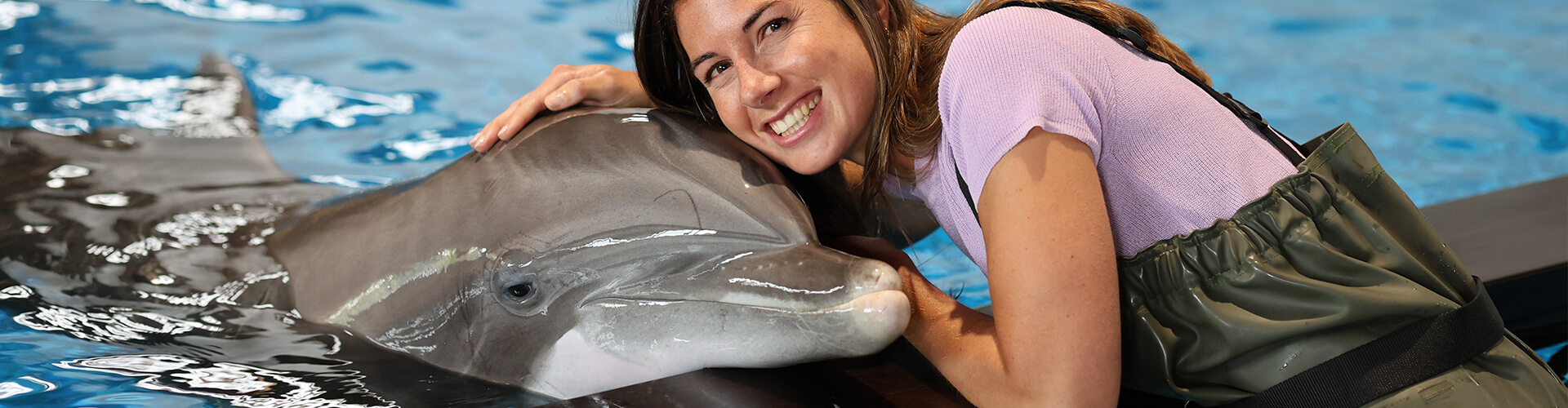 Boudewijn Seapark Bruges vous présente une rencontre unique et interactive avec des dauphins ! Pendant ce programme, joignez-vous aux soignants dans l’eau avec les dauphins. Mettez le pantalon de pêche et montez sur une plateforme spéciale. Nous baissons cette plateforme jusqu’à ce que l’eau soit au niveau de votre taille. Ensuite, les dauphins nageront jusqu’à vous. Ainsi, vous serez face à face avec ces animaux fantastiques! Découvrez-les de près, touchez-les et donnez du poisson. Entre-temps, nos entraineurs vous fourniront des explications sur ces mammifères marins. Cela vous permettra d’en apprendre davantage sur la biologie et le comportement des dauphins. En outre, vous pouvez demander un exercice à nos dauphins aux côtés d’un entraineur! Pendant ce programme, nous photographierons votre rencontre. Nous imprimerons cette photo et vous la recevrez immédiatement après le programme dans un joli livret éducatif.