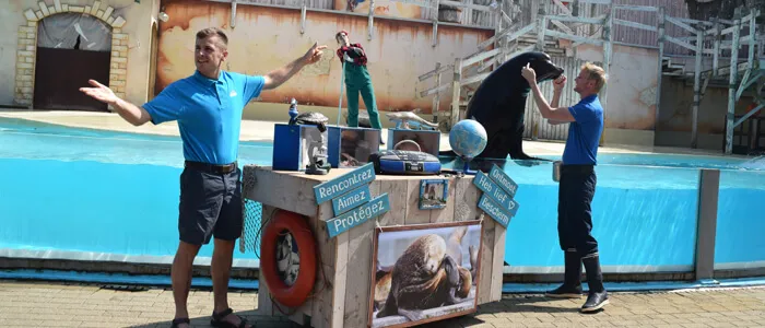 Tijdens het educatief programma nemen de verzorgers je mee op ontdekkingstocht bij de dolfijnen én de zeeleeuwen. Deze tocht start met een voorstelling in het zeeleeuwentheater en gaat direct daarna verder in het dolfinarium. Zo kunnen jullie de dieren van op de eerste rij zien! Je leert spelenderwijs over het leven van de dolfijnen, zeeleeuwen en zeezoogdieren in het algemeen. Niet alleen hoe ze leven in een dolfinarium, maar ook in het wild. Dankzij de pedagogische vorming van ons team, staat deze voorstelling garant voor een uitstekend lespakket. Als kers op de taart mag de hele klas samen met de dolfijnen op de foto! Een leuk souvenir om aan familie en vrienden te tonen. De leerkracht ontvangt ook vooraf per e-mail educatieve werkblaadjes. Zo kan het programma voorbereid worden in de klas, samen met de leerlingen. Bekijk hier de verschillende educatieve programma’s.